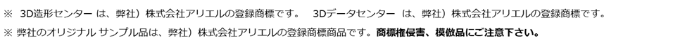 ※ 3D造形センター® は、弊)株式会社アリエルの登録商標です。3Dデータセンター® は、弊)株式会社アリエルの登録商標です。